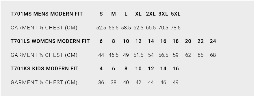 Click here for size chart